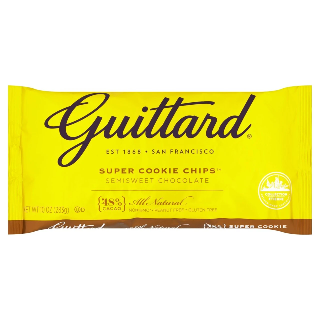 Semi sweet chocolate super cookie chips. Smoother, meltier chips for the chocoholic. 48% cacao, All natural, Peanut and gluten free, Artisan-made chocolate, Non GMO, Kosher – D