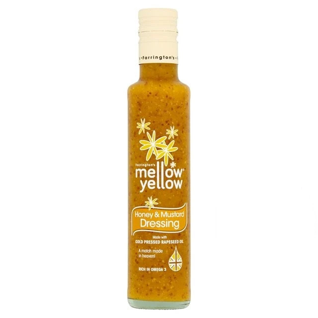 Our fantastic Honey & Mustard Dressing is made with our award winning rapeseed oil which has only half the saturated fat of olive oil.* Carefully blended with the finest ingredients and no additives, we’ve created a delicious dressing for you to enjoy with salads and much more. Made with cold pressed rapeseed oil, a match made in heaven! Rich in omega 3, Gluten and dairy free, Suitable for vegetarians.
