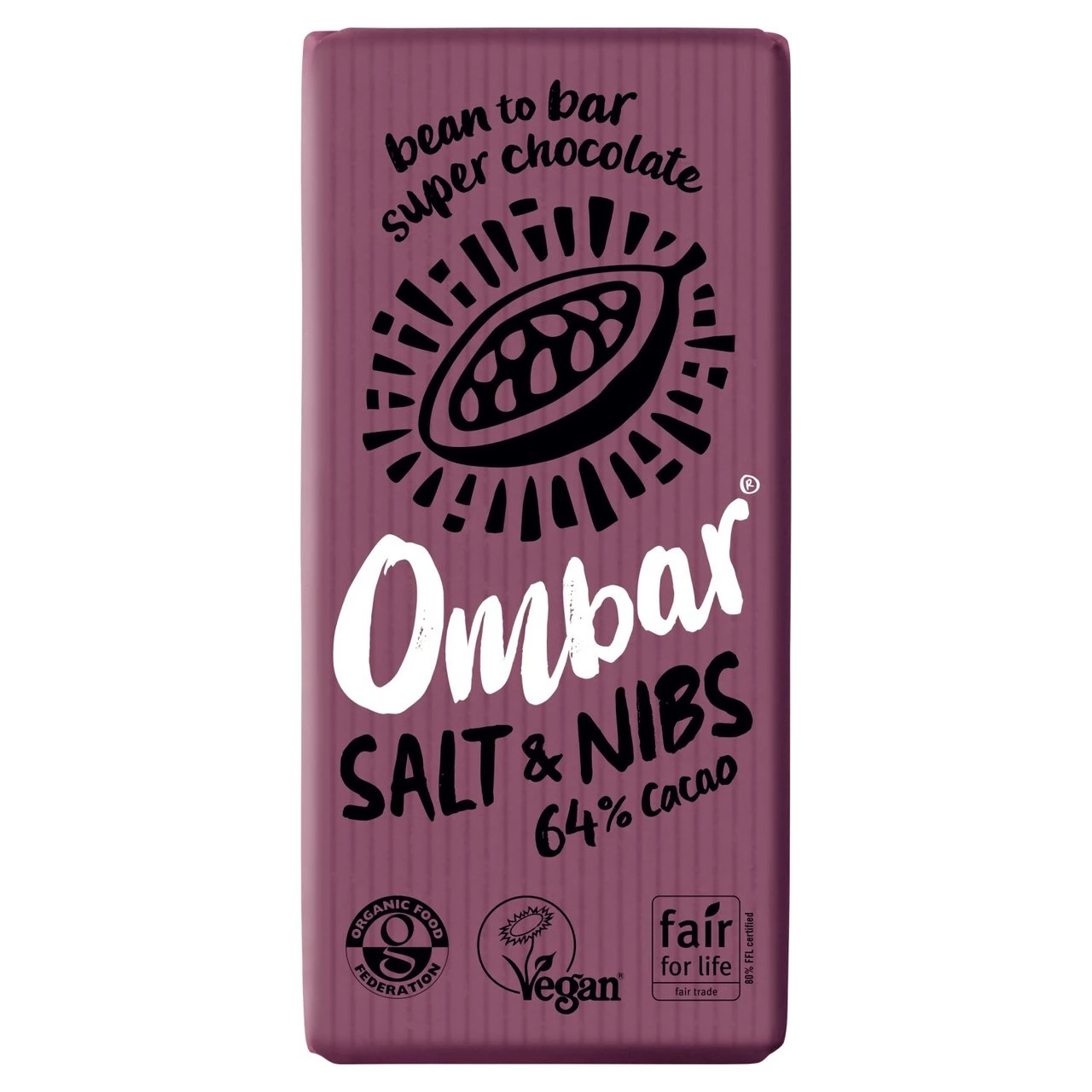 Rich, creamy dark chocolate with crunchy cacao nibs and a touch of salt. This bar is a source of manganese. Manganese contributes to the protection of cells from oxidative stress. Fair trade, Organic, Cacao polyphenols, Unroasted Ecuadorian cacao, All natural ingredients, Bean to bar super chocolate, 64% cacao, No refined sugar, Dairy and gluten free, Suitable for vegans and vegetarians.